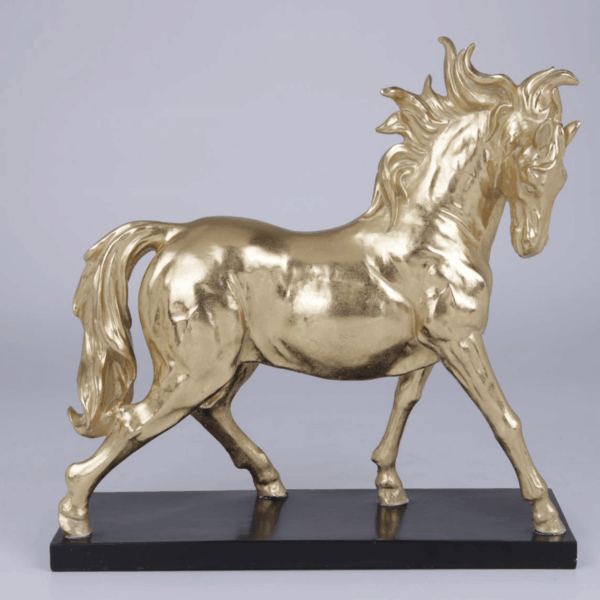 Sculpture « Cheval Ardent » – Doré & Socle Noir (33 cm) Apportez une dose d’énergie et de noblesse à votre décoration