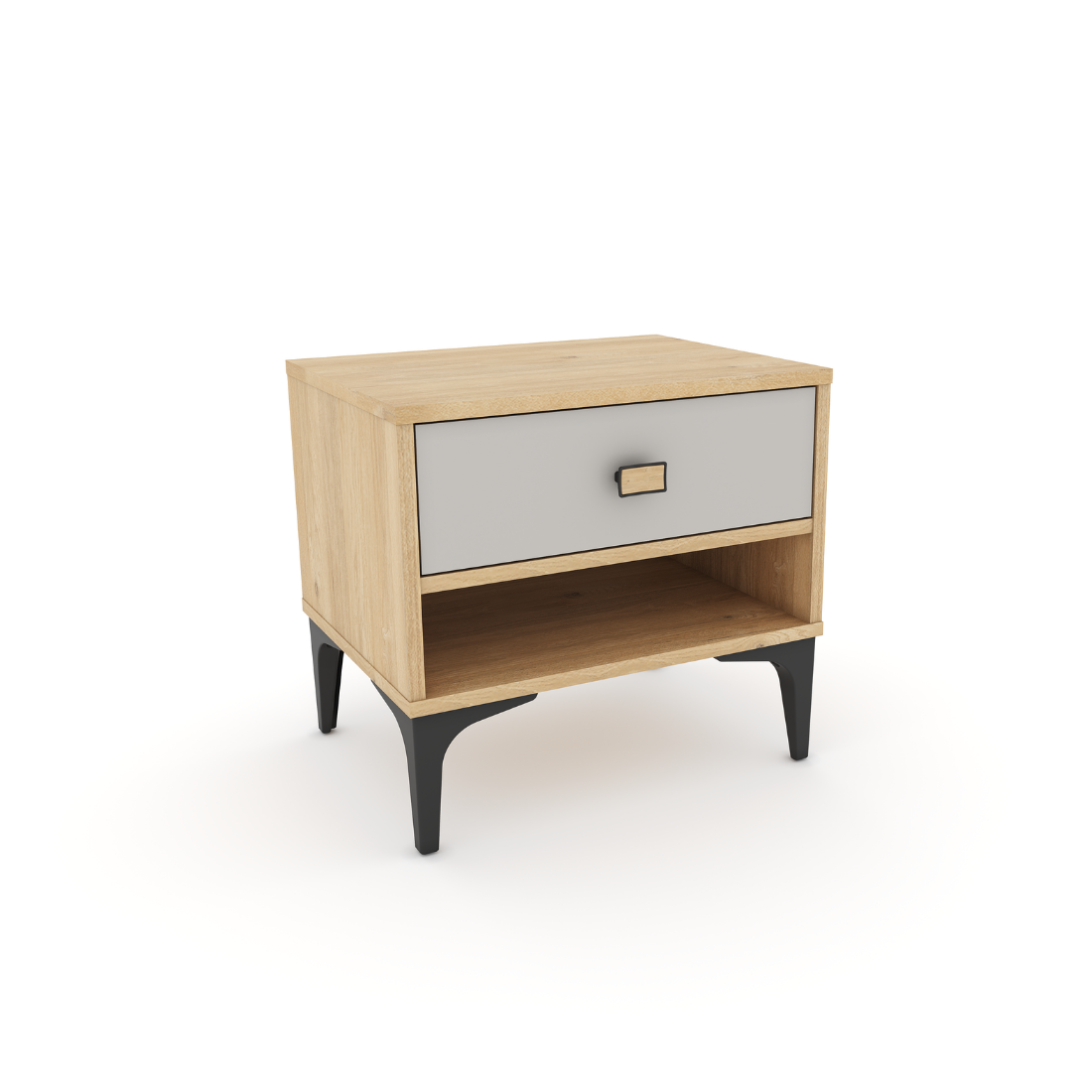 Poignée Contrastée : Le tiroir est orné d’une poignée rectangulaire noire, apportant une note graphique moderne et facilitant l’ouverture.
