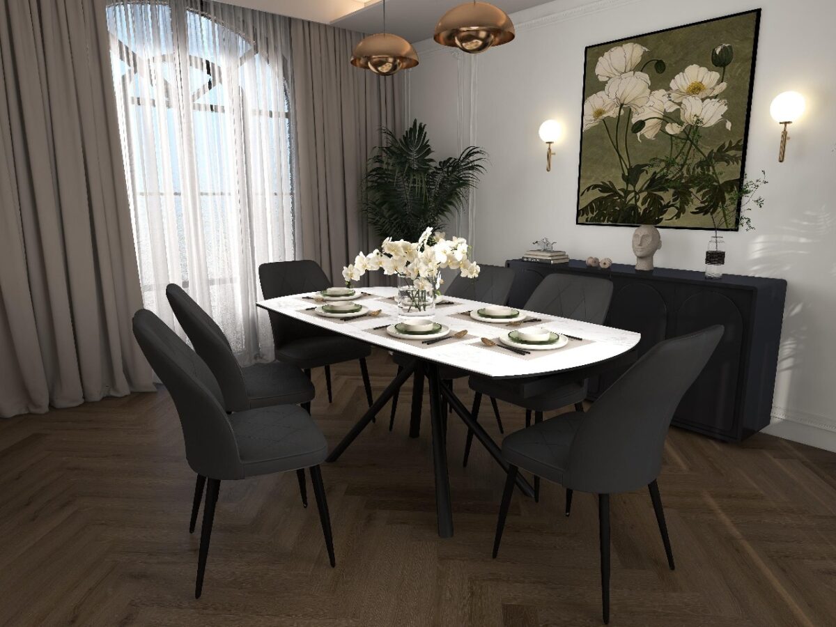 Ajoutez une touche d’élégance à votre maison avec l’ensemble de table. Cet ensemble comprend une table extensible avec des pieds en bois, offrant à la fois fonctionnalité et style.