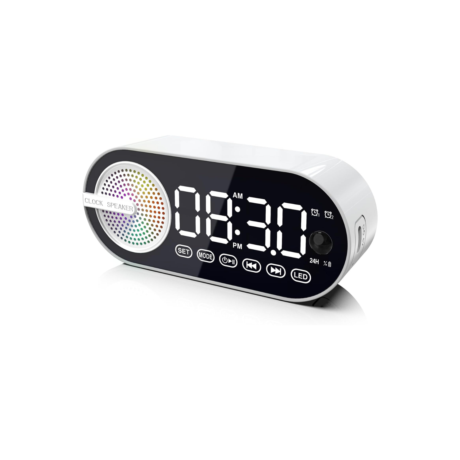 - Fonction double alarme : Grâce à la fonction double alarme, vous pouvez programmer deux heures de réveil différentes, ce qui est idéal pour les couples ou toute personne ayant des horaires variables. Réveillez-vous au son de votre station de radio FM préférée ou choisissez parmi une large sélection de mélodies apaisantes disponibles sur l’enceinte Bluetooth.