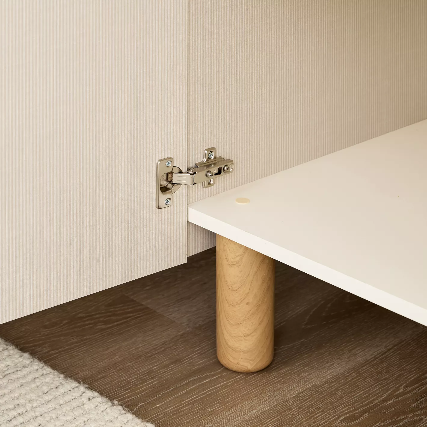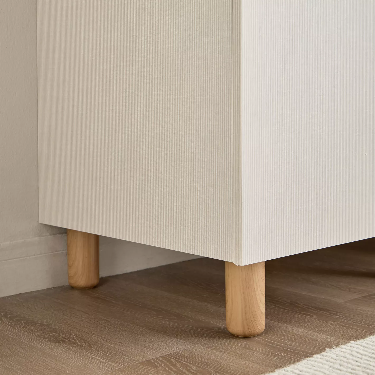 Pieds Scandinaves : Pour un look plus aéré et raffiné, la commode repose sur des pieds en bois clair cylindriques de style scandinave, créant une impression de flottement.