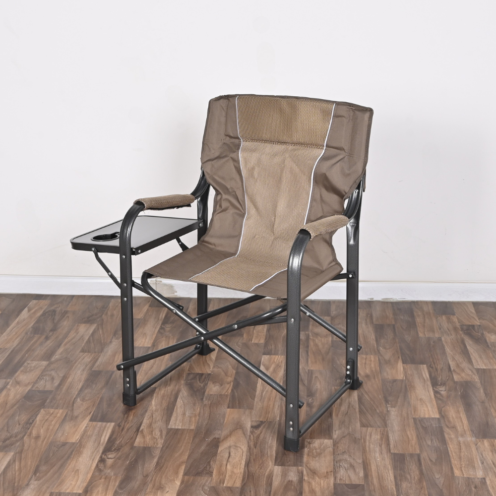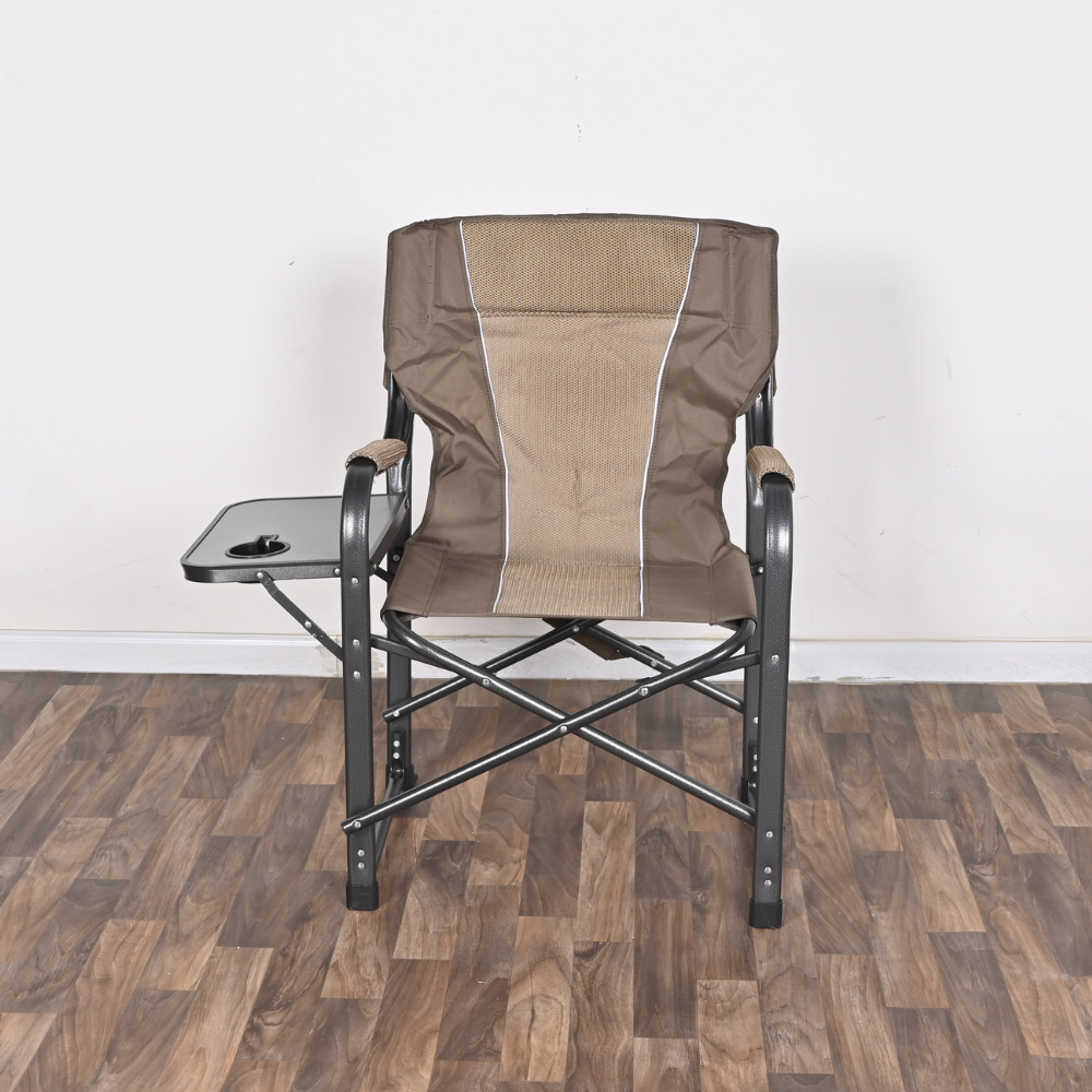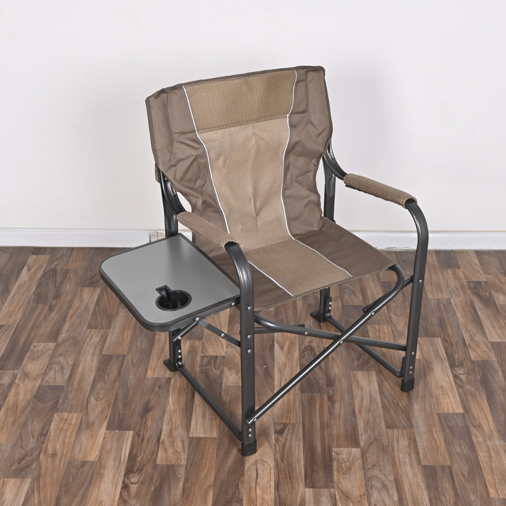 Cette chaise de camping extra-large en acier est légère et pliable, idéale pour vos activités en extérieur. Son tissu beige
