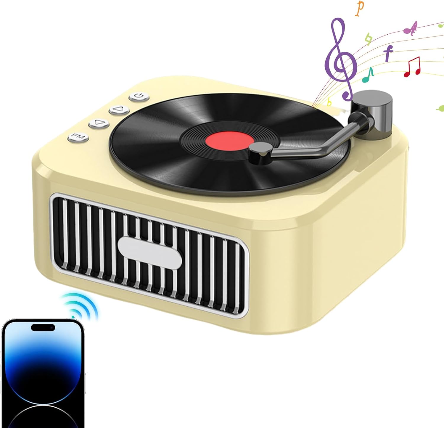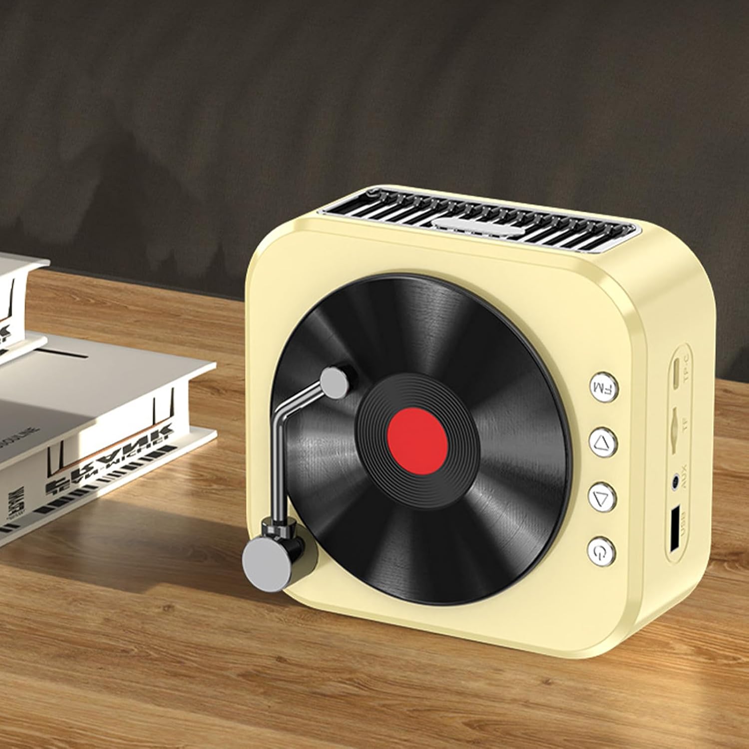 - Laissez votre musique passer rétro : adoptez le charme vintage et l’ambiance élégante avec notre haut-parleur sans fil. Inspiré par les tourne-disques classiques, il est conçu pour vous faire sentir créatif et tendance avec son attrait nostalgique.